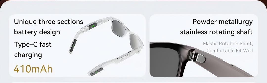 The F0-280 Hi-Fi Sound Quality ensures audio clarity that makes music, calls, and media immersive. Backed by a robust 410mAh large-capacity battery, these glasses offer hours of uninterrupted use, keeping you powered all day long. With the Type-C charging port, recharging is swift and hassle-free.