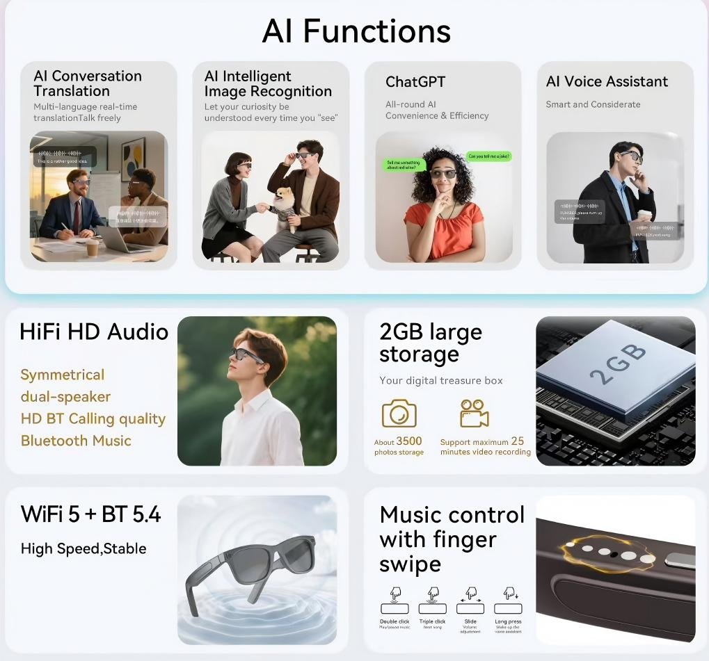 With 2GB memory support, these AI-powered glasses combine functionality and style effortlessly, making them your ultimate wearable tech.